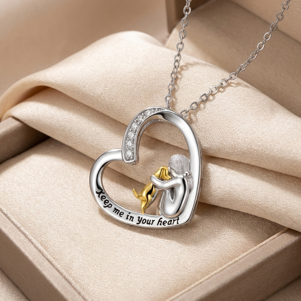 Αθάνατη ανάμνηση του πιστού σου συντρόφου με ένα κολιέ από 925 ασημένιο μέταλλο, που γιορτάζει τον καρδιοειδή σχεδιασμό και τη λάμψη των ζιργκόν πετρών που υπάρχει ανάμεσα σε εσένα και τον αγαπημένο σου σκύλο, δημιουργώντας έναν μοναδικό δεσμό.