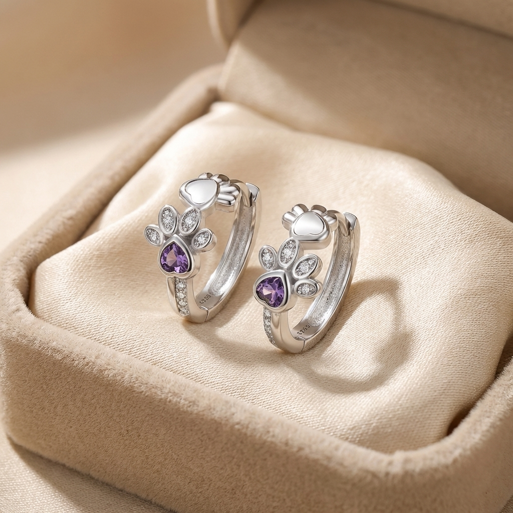 Ανακάλυψε τα μαγευτικά σκουλαρίκια! Φτιαγμένα από αληθινό 925 ασήμι, συνδυάζοντας τέλεια την κομψότητα και την ευαισθησία. Κάθε σκουλαρίκι διακοσμείται με λαμπερούς κρυστάλλους και μια καρδιά, συμβολίζοντας τον ιδιαίτερο δεσμό που μοιραζόμαστε με τα κατοικίδιά μας.