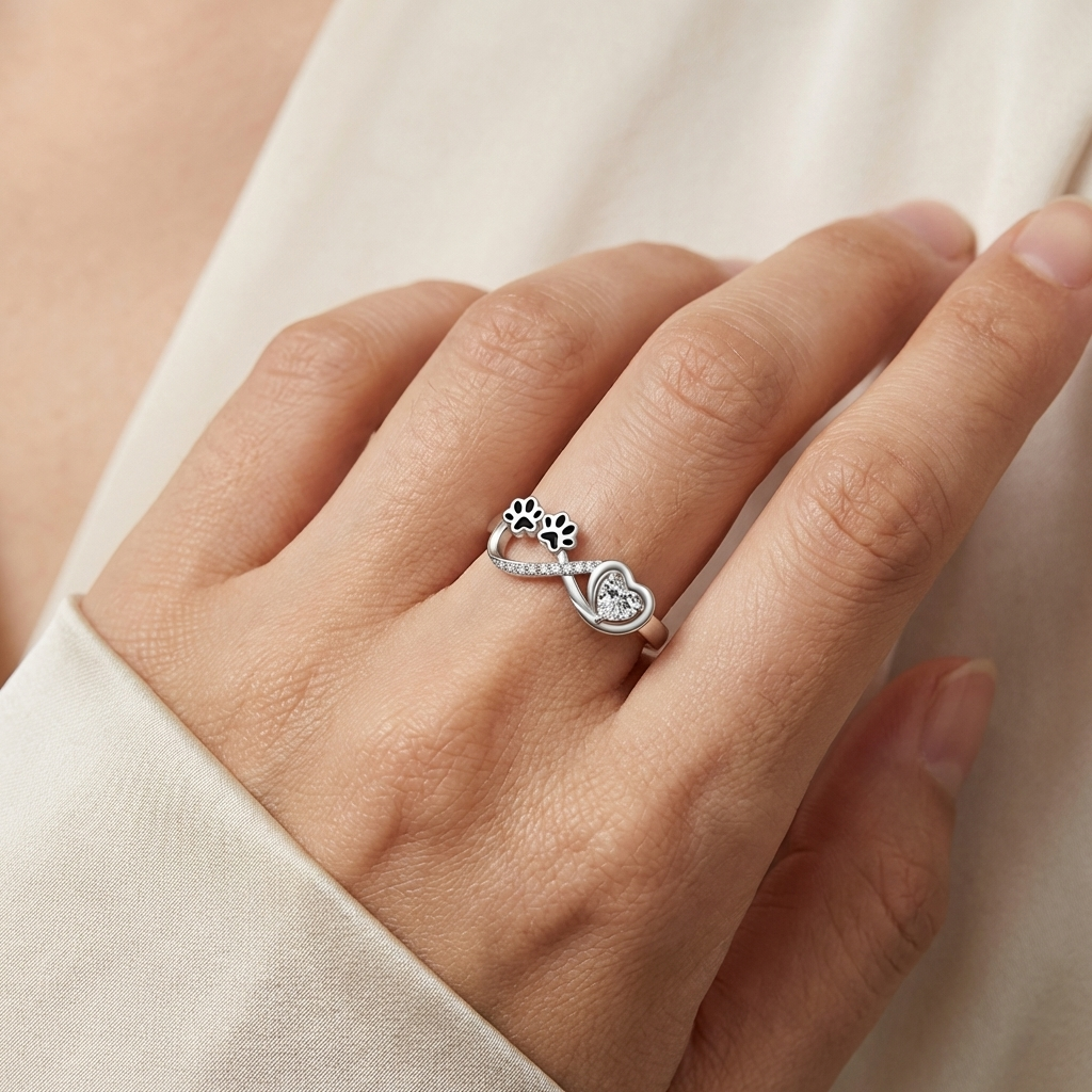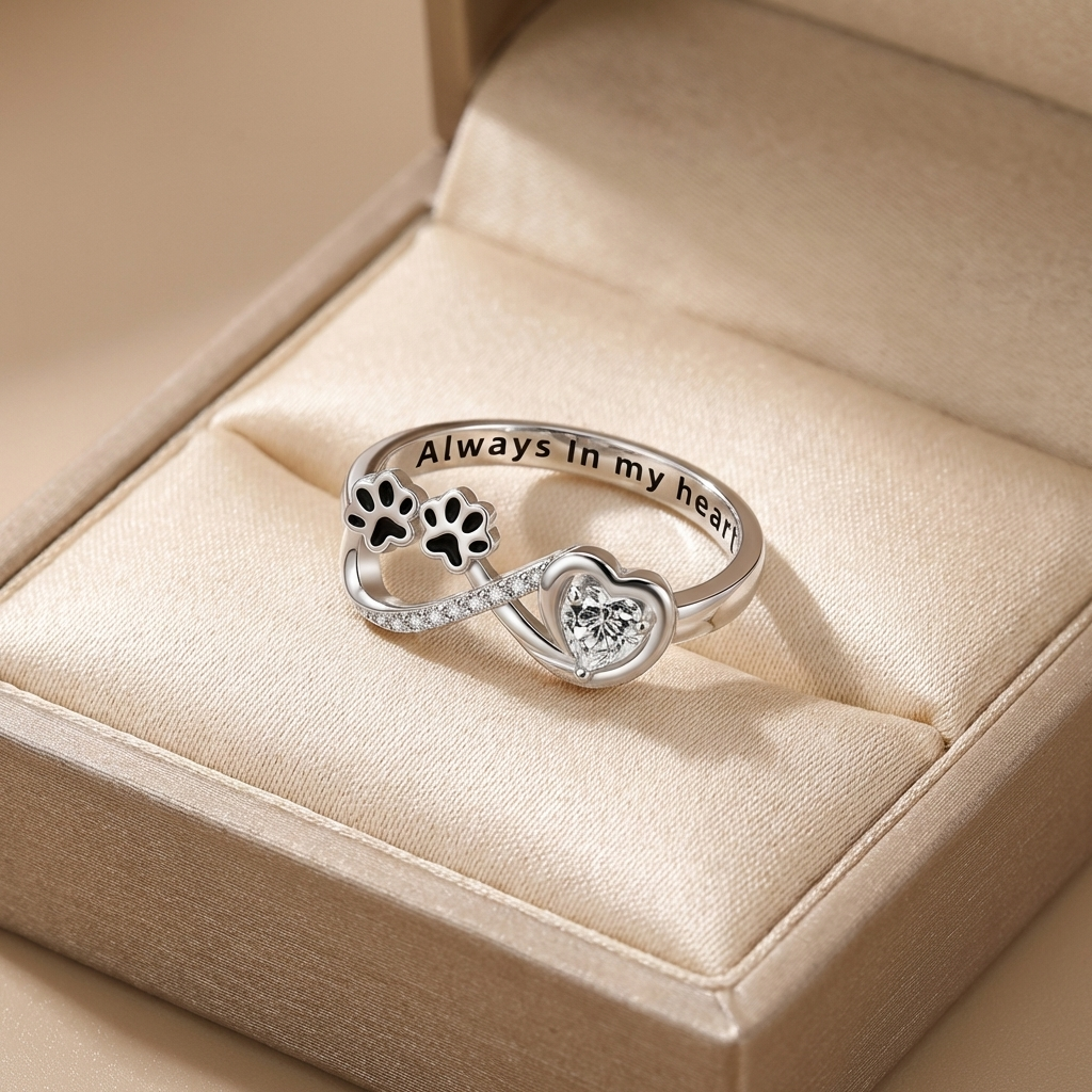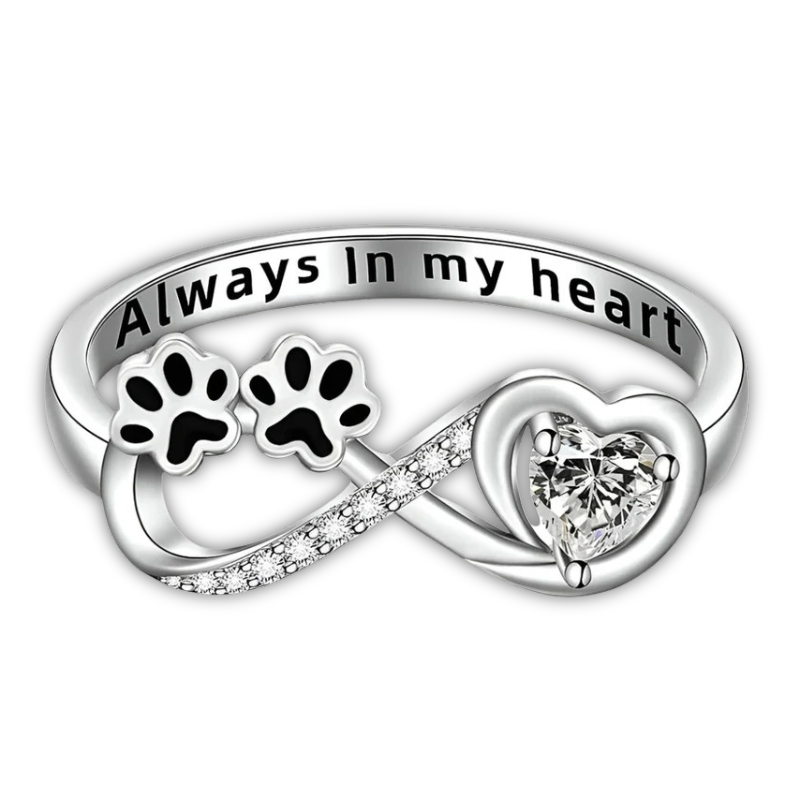 Ανακάλυψε αυτό το συγκινητικό δαχτυλίδι, που συμβολίζει την άνευ όρων αγάπη για τον πιστό τετράποδο φίλο σου. Το αποτύπωμα, η λαμπερή καρδιά και το σύμβολο του άπειρου συνδέονται σε έναν κομψό και σημαντικό σχεδιασμό.